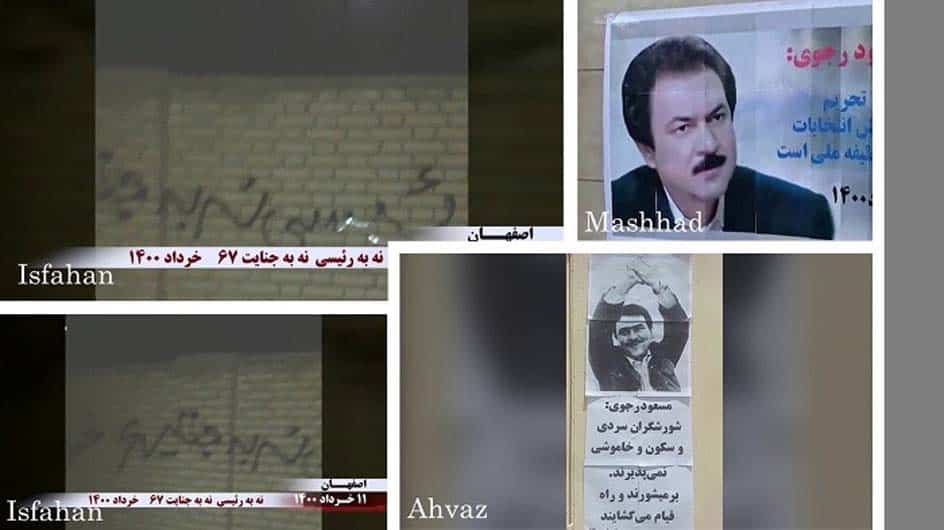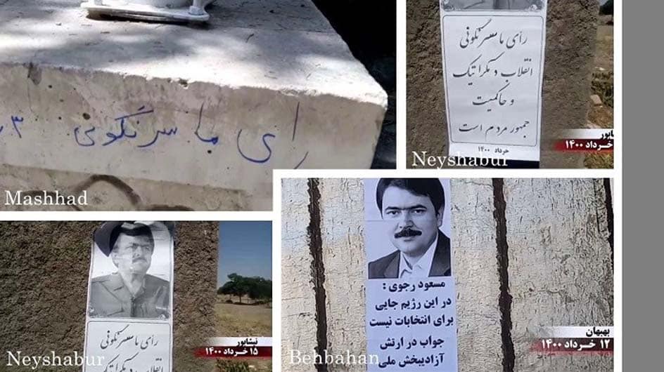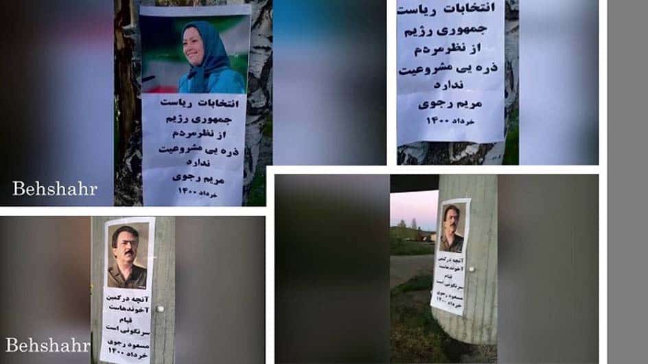 Nga 1 deri më 5 qershor 2021, mbështetësit e Mojahedin-e Khalq (MEK/PMOI) dhe Njësitë e Rezistencës kanë bërë thirrje për bojkotim të farsës së zgjedhjeve presidenciale të mullahëve duke ngjitur postera e afishe, duke shkruar graffiti, e duke shpërndarë fletushka në mbarë Iranin. Krahas zonave të ndryshme të Teheranit të Madh, këto veprimtari janë kryer edhe në Karaj, Isfahan, Shiraz, Hamedan, Khorramabad, Ahvaz, Kermanshah, Sari, Kazerun, Hashtpar Tavalesh, Yasuj, Andimeshk, Behshahr, Neyshabur, Behbahan dhe Jahrom.