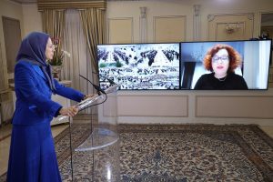 Duke theksuar faktin që sot, fashizmi fetar që sundon Iranin ka kaluar në një fazë dështimesh dhe disfatash pavarësisht gjithë gjakderdhjeve e shtypjeve që ka kryer, Presidentja e zgjedhur e NCRI shtoi: Për sa kohë që regjimi klerikal të mos jetë përmbysur, ai nuk do ta braktisë represionin, diskriminimin fetar, dhe misogjininë. Nuk do t’i braktisë ndërhyrjet dhe krimet në vendet e Lindjes së Mesme pasi  ai mbështetet tek këto politika për të mbijetuar. Por ekziston një zgjidhje për këtë gjëmë të madhe që ka marrë peng fatet e vendeve të Lindjes së Mesme dhe që paraqet rrezikun më të madh për paqen e sigurinë globale. Kjo zgjidhje është përmbysja e fashizmit fetar të mullahëve nga Rezistenca Iraniane dhe kryengritja e popullit iranian. Dhe sot, MEK, populli i Iranit, dhe fëmijët e tij të guximshëm janë ngritur për ta rrëzuar sundimin e diktaturës fetare.
