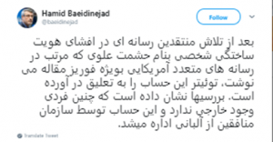 Në qershor 2019, regjimi klerikal dhe apologjetët e tij patën folur me hiperbola për sa i përket asaj që ata e quanin llogari të rreme të lidhur me MEK-un nën emrin e Heshmat Alavi. Ata nisën një fushatë propagandistike duke përdorur një artikull plot fakte të rreme nga “The Intercept” dhe disa programe të radiove perse për të shpërndarë historinë e tyre të rreme lidhur me këtë llogari dhe llogaritë e MEK. Por pak ditë më vonë, pas një hetimi të plotë dhe sigurimit që llogaria e Alavi-t ishte e besueshme dhe drejtohej nga një person real, Twitter e rihapi llogarinë e Alavi-t duke e ekspozuar edhe më tej fushatën demonizuese. Në atë kohë, ambasadori i regjimit në Londër, duke përsëritur fjalët e “kritikëve” të MEK, pati postuar në Twitter: