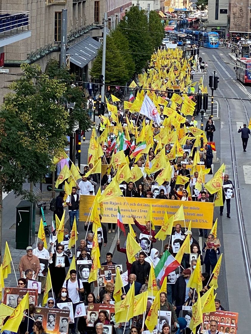 Të hënën, mijëra iranianë u grumbulluan në Stokholm të Suedisë, duke bërë thirrje për një politikë të rreptë kundrejt regjimit iranian dhe për t’i kërkuar llogari regjimit për masakrën e 1988-ës ndaj të burgosurve politikë në Iran. Pjesa më e madhe e 30,000 viktimave të masakrës ishin anëtarë e mbështetës të Organizatës Muxhahedine të Popullit të Iranit (PMOI/MEK).