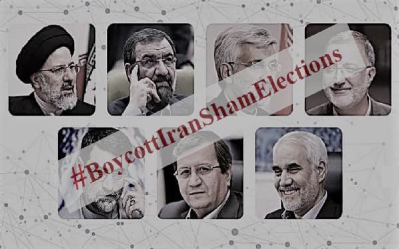 Ndërkohë që kandidatët e refuzuar shprehin mbështetje për Raisi-n dhe bëjnë thirrje për një pjesëmarrje të lartë në zgjedhje, thjesht sepse ruajtja e pushtetit të regjimit u intereson të gjithë mullahëve, Organizata Muxhahedine e Popullit të Iranit (PMOI/MEK) dhe njësitë e saj të brendshme i kanë shtuar thirrjet e tyre për një bojkot zgjedhor përmes slloganeve anti-regjim të ngjitura nëpër mure në mbarë vendin dhe të postuara në rrjetet sociale me hashtag-un #BoycottIranShamElections (Bojkotoni Farsën e Zgjedhjeve të Iranit), hashtag që shpërndarë mbi 121,000 herë brenda vetëm pak orësh. Një nga këto sllogane është “Kemi dëgjuar kaq shumë gënjeshtra saqë nuk do të votojmë më.”